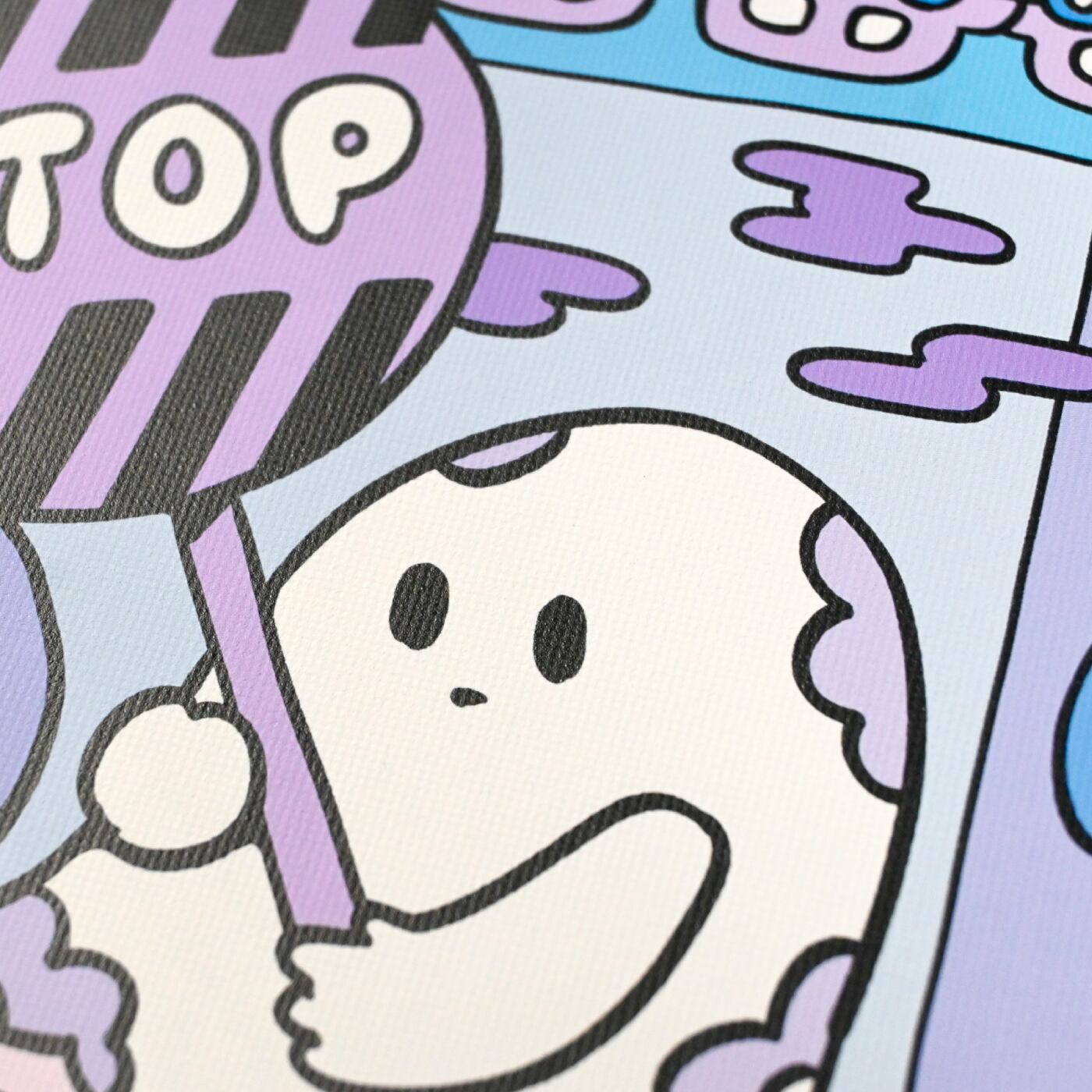 帆布ではなく、エンボスの加工紙を使用しており、高精細な印刷となっています。