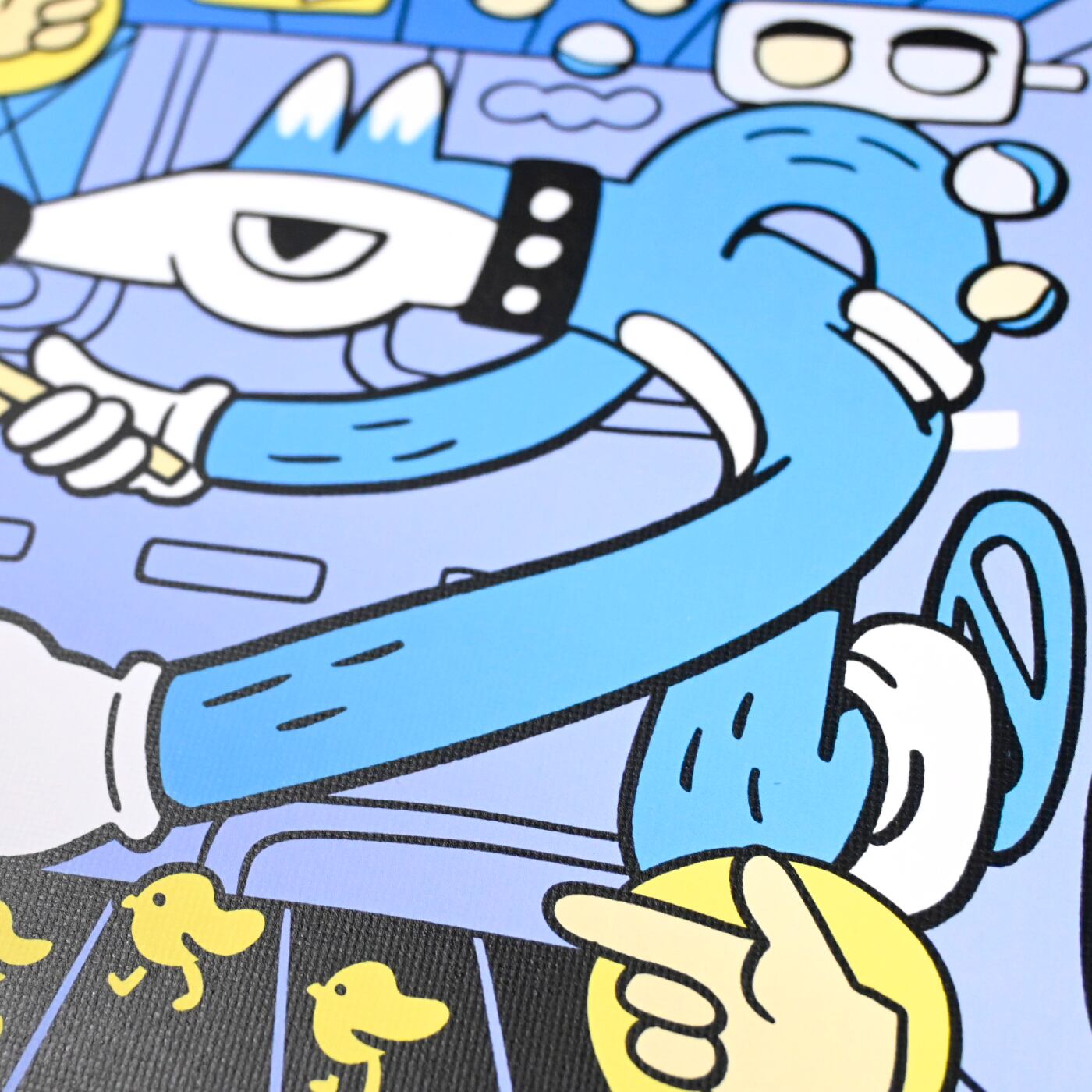 帆布ではなく、エンボスの加工紙を使用しており、高精細な印刷となっています。